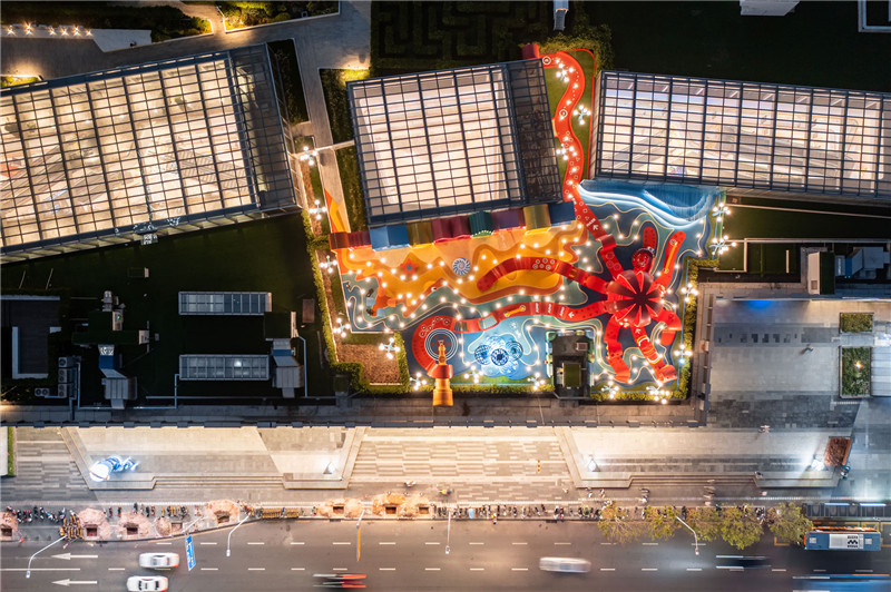 Octopus Kingdom is a playground of eye-catching urban playscape on the rooftop of Gateaway One, a newly built shopping mall in Nanshan District, Shenzhen, China. It is a hyper-stimulating urban toy for Nanshan District and for all the visitors of the mall, a colorful intervention that acts as an urban attractor, calling the attention by standing out from its urban surrounding environment.